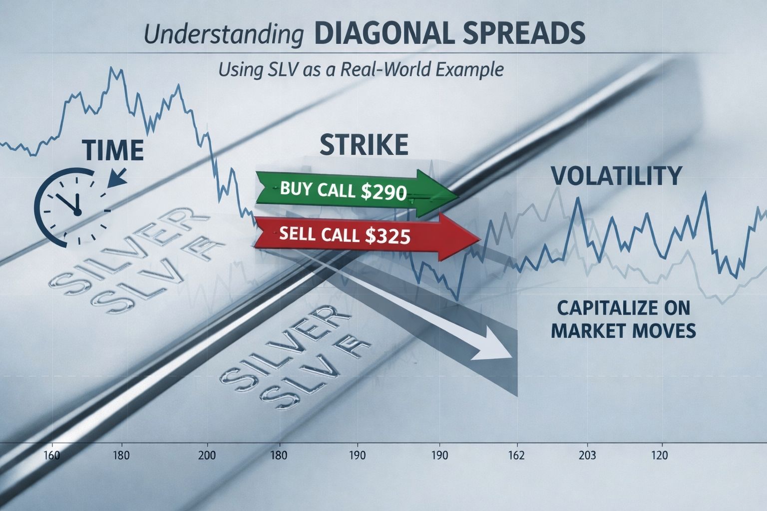 Summary:  Diagonal spreads combine time, strike, and volatility into a single options structure. This article explains how diagonals work in practice, using recent volatility in SLV purely as a real-world learning example.