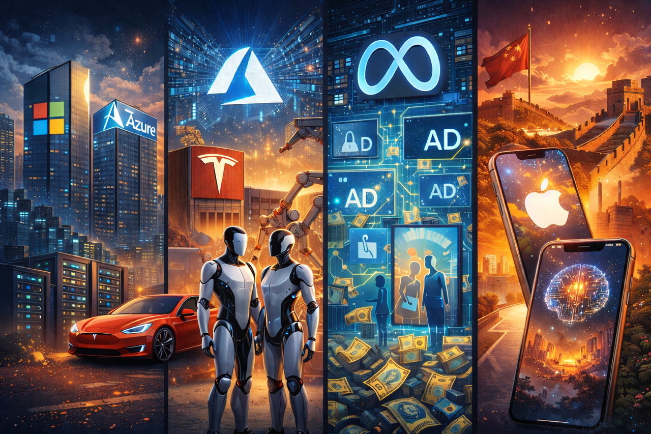 • These four are running four different AI playbooks. That’s why this week is useful: it helps investors decide whether 2026 is about AI infrastructure, AI monetisation, or AI promises that still need proof.